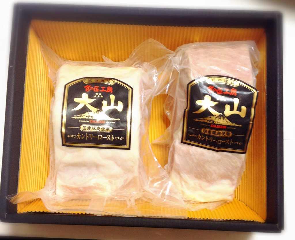 ワタクシは迷いに迷って大仙ハムのカントリーローストのブロック400g、2パックにしました。